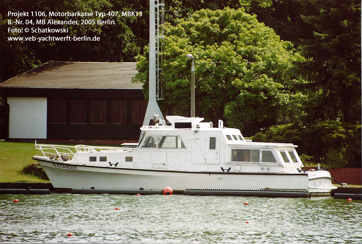 B-Nr.04; "ALEXANDER"; Projekt 1106.02; ex 31-603; ex GS15 | ||||