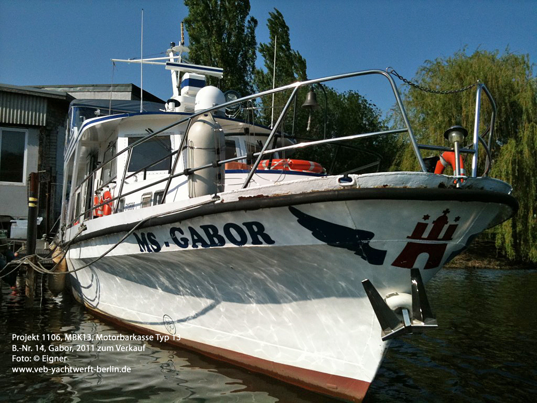 B-Nr 14; "GABOR"; Projekt 1106.02; ex: 21-603; ex. Karl-Heinz II; ex. Berlin Tiergarten | ||||