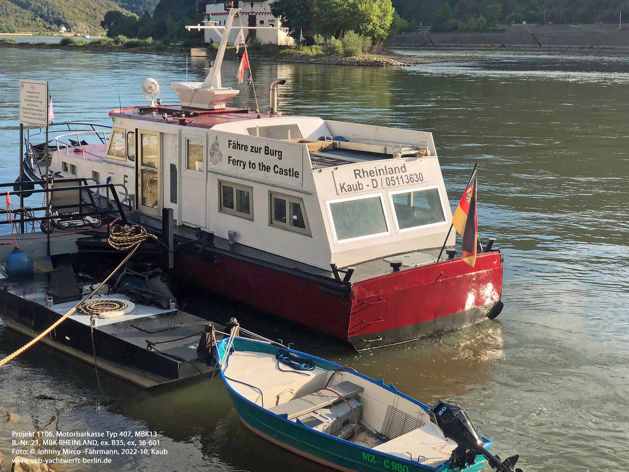 B-Nr.21; Fähre "RHEINLAND"; Projekt 1106.02; ex: Kormoran; Fährgemeinschaft Kaub GbR Link | ||||